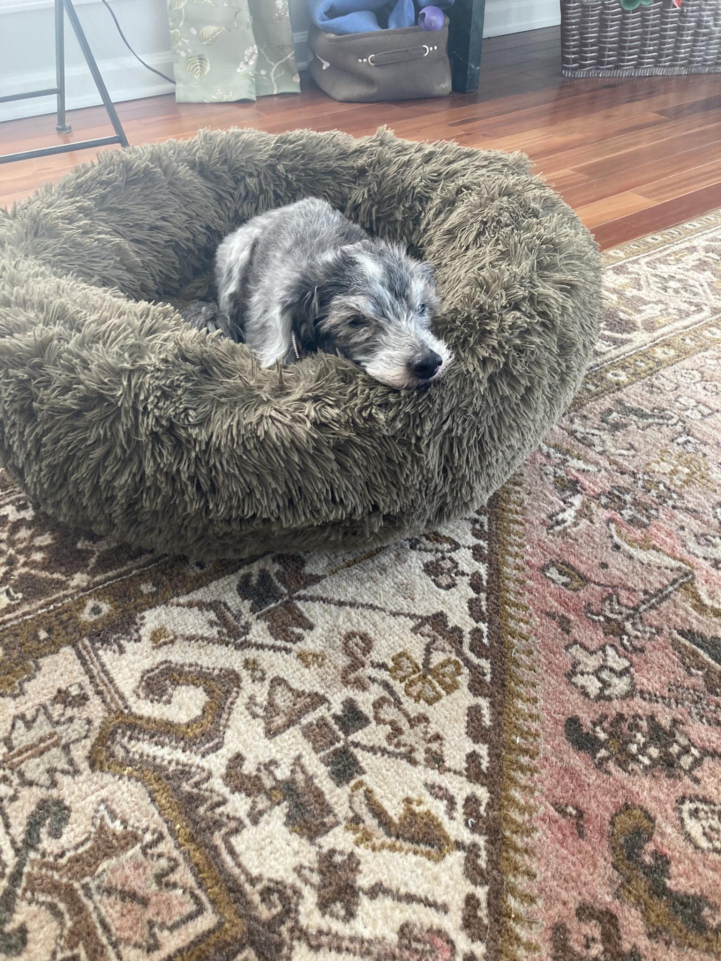 Good bye sweet Wendy. I will miss the little nudges to the back of my leg, the crawling under our bed to sleep, the long car rides to NC, the flappity flap of your ears as you shook your head. But most of all I will miss your big brown eyes', and your penchant to be near me at all times.