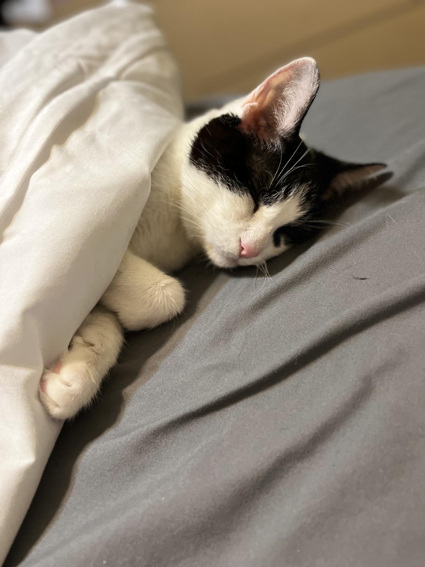 Nina, also known as Nina Beans, Beanie Baby, Beansie, and many other nicknames, was a sweet girl, who loved nothing more than cuddling up with her loving family. She would follow us from room to room, looking up at us with such adorable, loving eyes, eagerly waiting for us to sit down, so she could immediately climb up onto our laps. She would curl up on us for hours, looking up at us sweetly while she lay there. Whenever we came home, she would get up and greet us at the door, and she loved company, greeting them and demanding pets from anyone who came over. She was such a clever cat, and knew exactly how to play us. Whenever she wanted to move over from the living room chair to the kitchen counter, she would look at us, wiggle her butt, and pretend like she was about to jump, knowing either one of us would quickly bend over and provide her a bridge to walk across. She would often jump up on our shoulders and ride around to get wherever she wanted to go. She was an avid lover of french fries, potato chips, and laser pointers. Whenever we would eat fries or potato chips, she would aggressively try to get some for herself, including wrapping her paws around our arms and pulling the food closer to her. She loved chasing after the red dot of her laser pointer, even into her old age. But most importantly, she loved us, and we loved her immensely in return. We cherished every second of the time we had with her, and we will carry her memory in our hearts forever. Rest in peace sweet Nina. April 2004-May 6th, 2024.