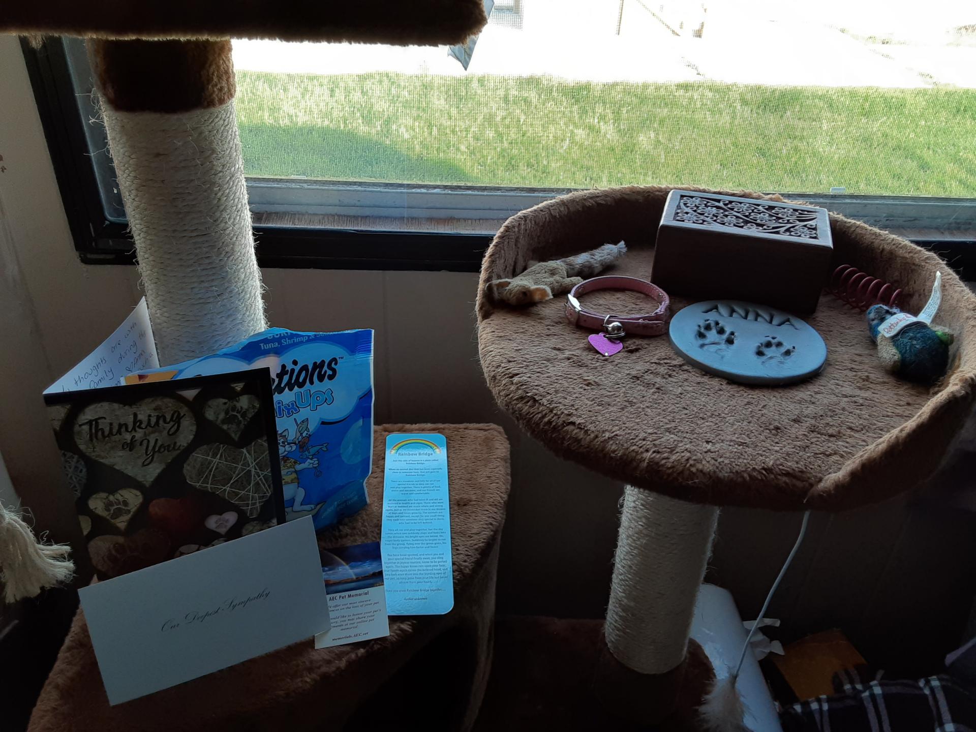 My sweet, gentle, little Anna will be greatly missed. I had adopted her March 7, 2020. While our time together was only 6 short months, she made a huge impact in my life. She became my shadow, lap kitty, never aggressive, always full of love. My son, my s.o. and I, our 19 and 8 year old cats Sylvester and Cookie are all missing her presence, she was such a joy, she brought me much happiness and companionship.